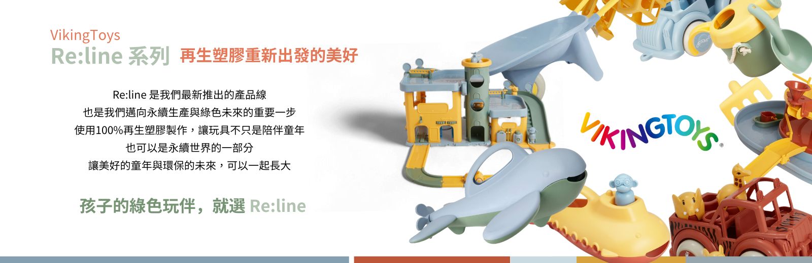 Re:line 系列全部使用 100% 回收塑膠 製成,把原本可能進到掩埋場或海洋的塑膠,變成孩子的玩具。