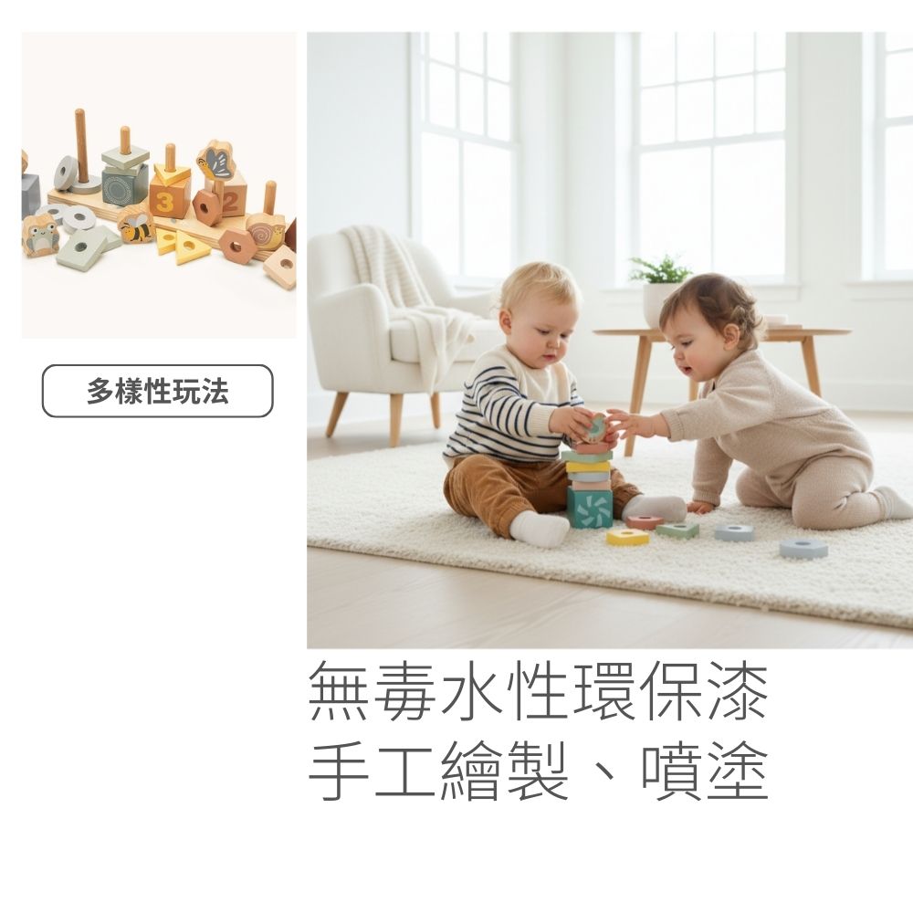 🖐️ 手眼協調訓練:將積木準確地套入木樁中,需要高度的手眼協調與精細動作控制,是幼兒小肌肉發展的最佳練習。