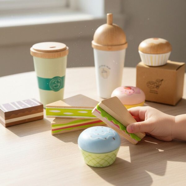 ☕ 隨行咖啡體驗:包含經典熱咖啡與附吸管的星冰樂冷飲杯,還原現代都會的外帶文化,讓孩子模仿大人買咖啡的日常。
