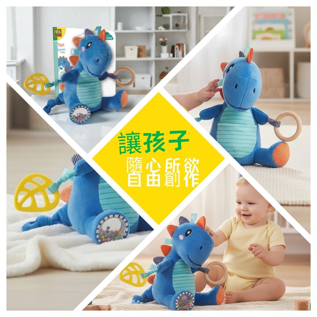 🦖 超柔大恐龍:大尺寸柔軟身體,內含多種感官活動,陪伴寶寶探索與玩樂。