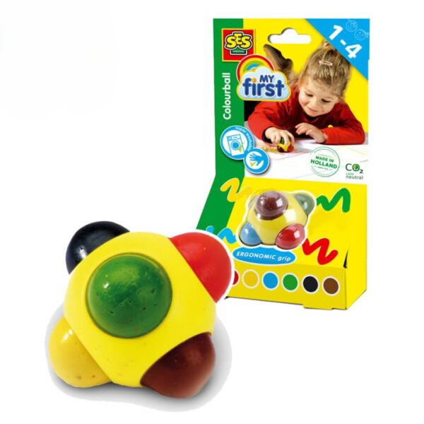 荷蘭SES 幼兒彩球樂園繪畫蠟筆球6色-00242